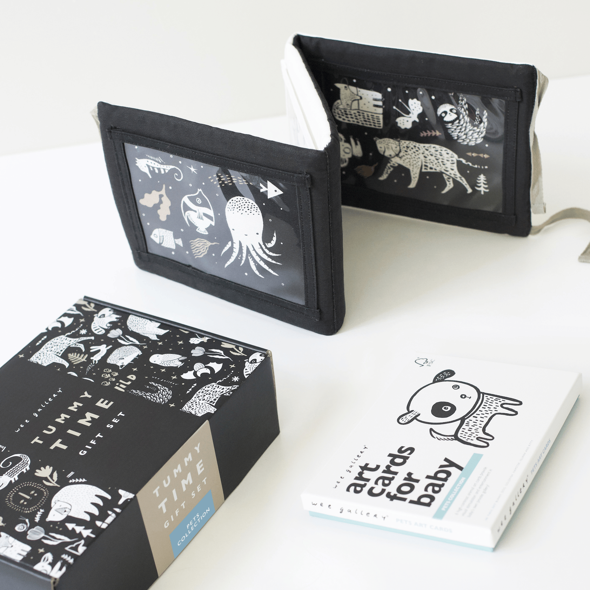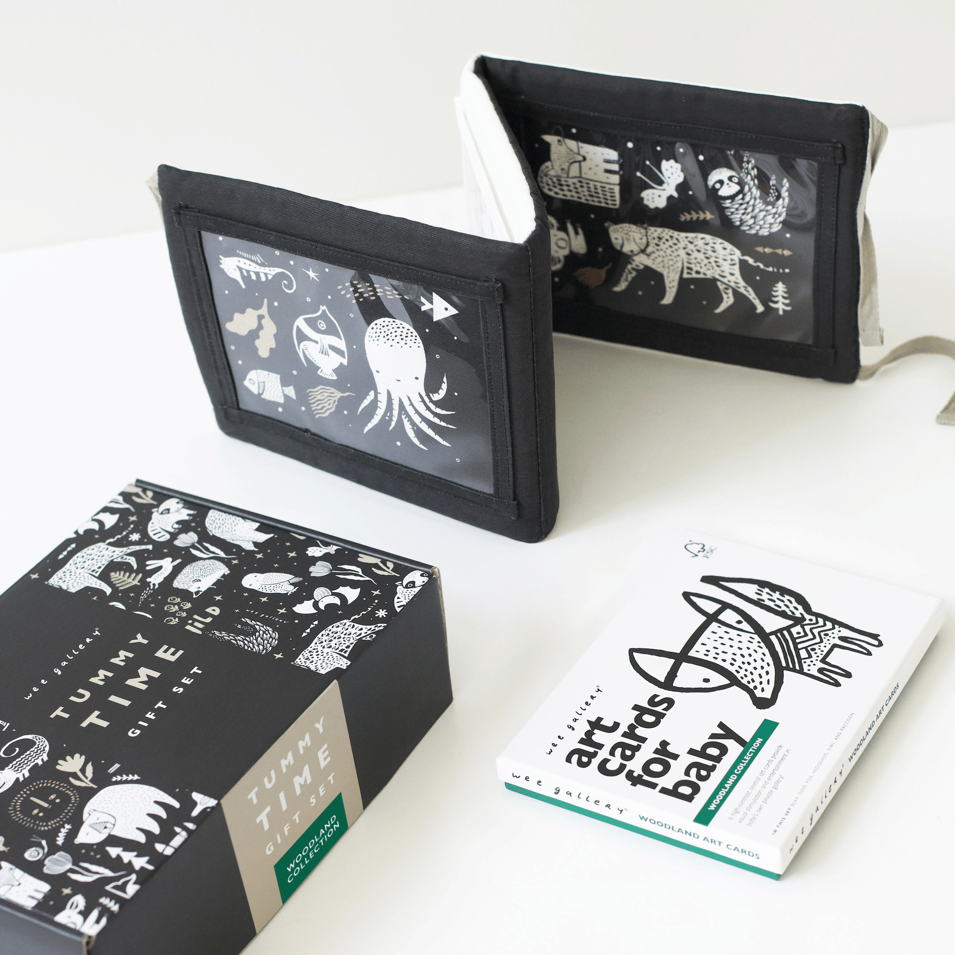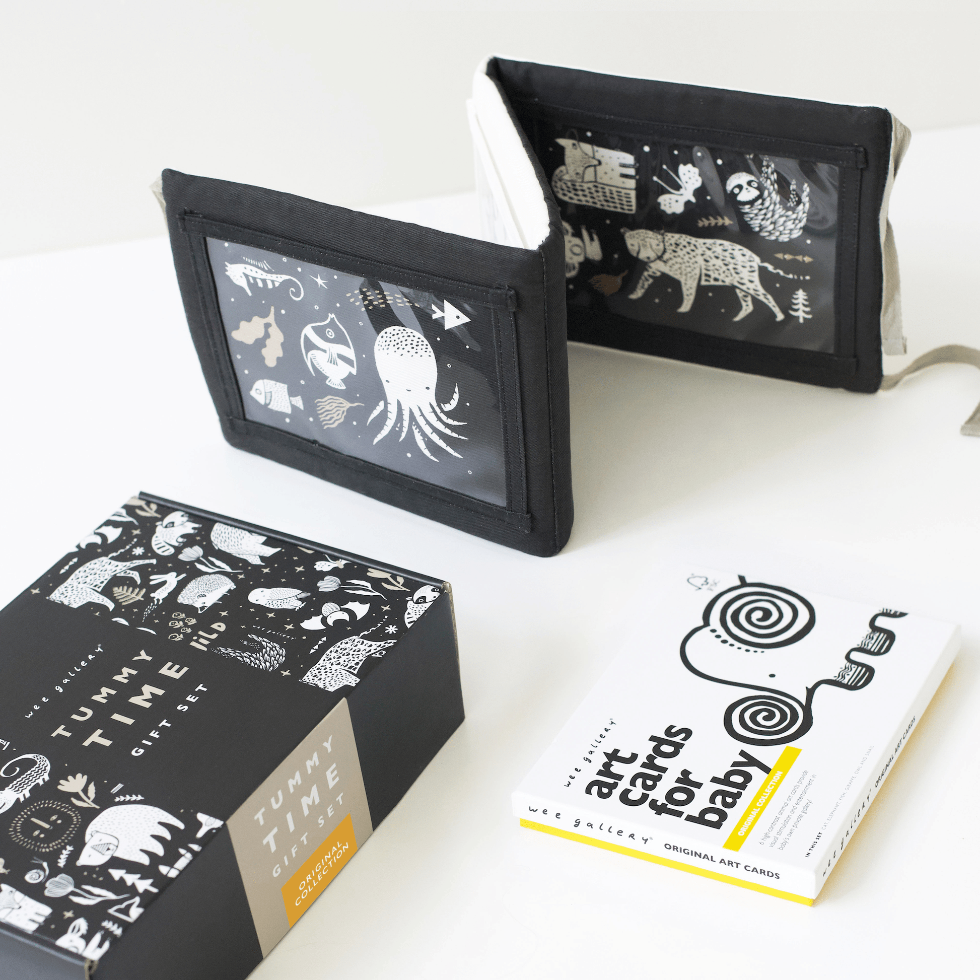 - Includes reversible Tummy Time Gallery, Wee Gallery 5" x 7" Art Cards for Baby, and a custom gift box
