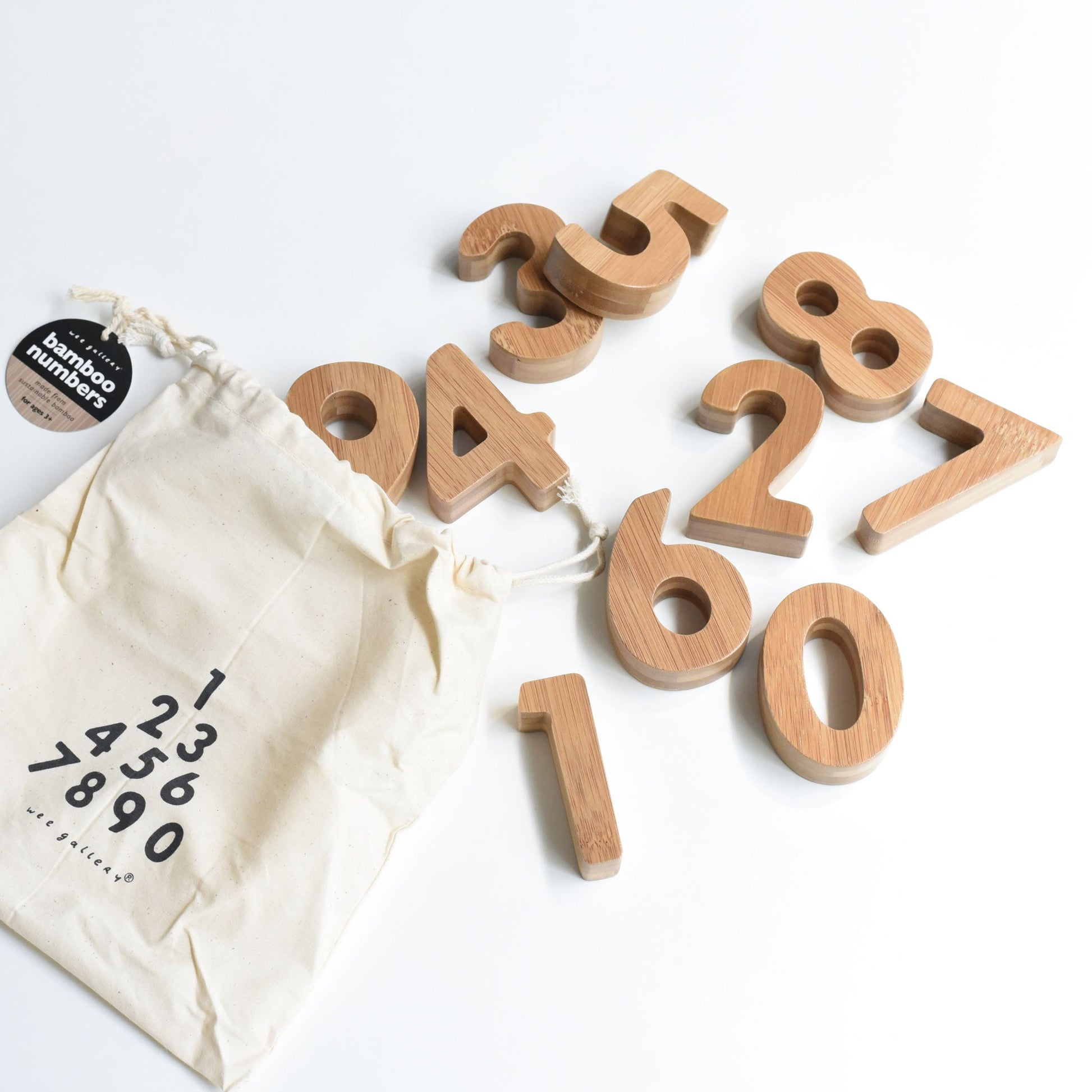 - Set of durable bamboo wooden numbers for hands-on counting and play
