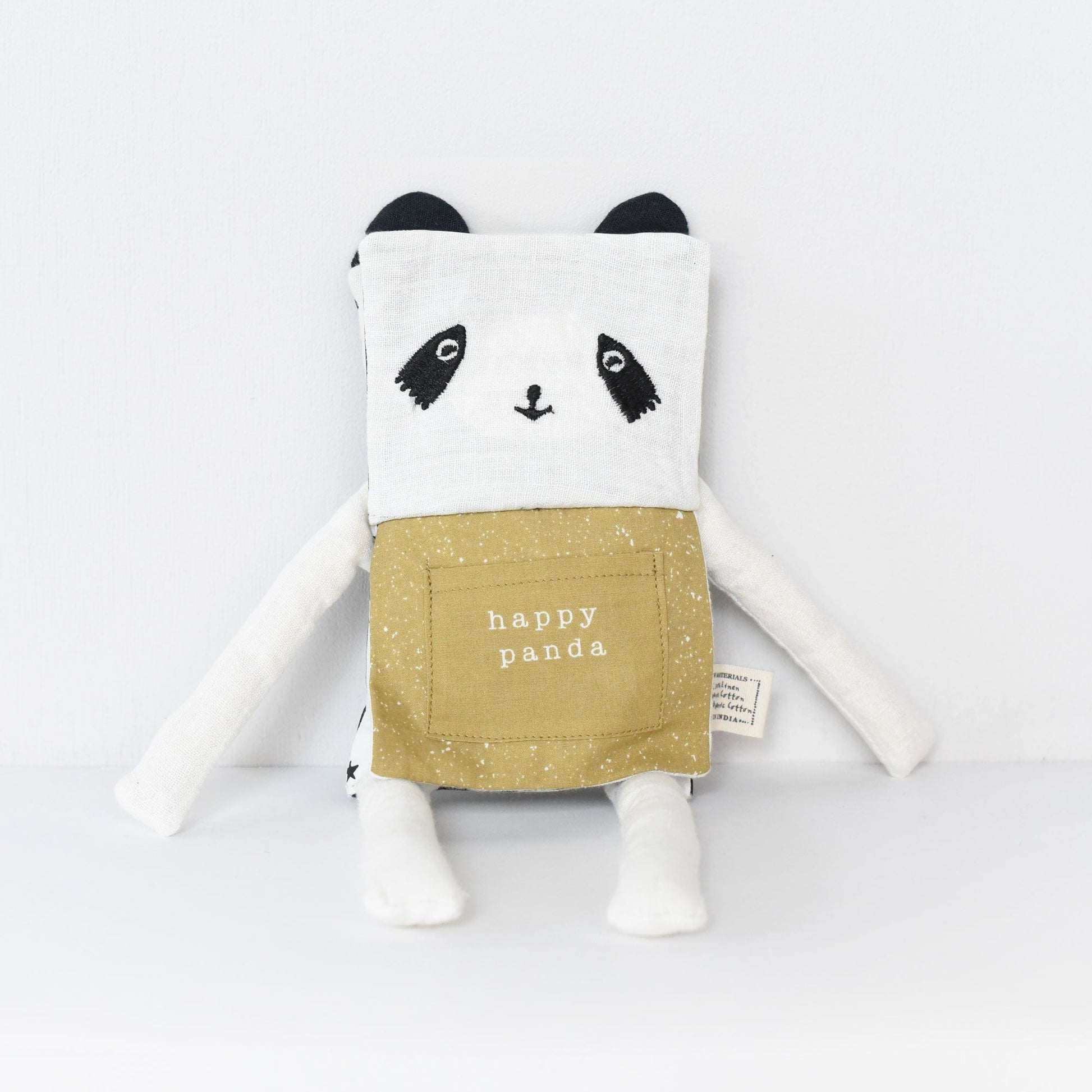 Flip through Panda's day—from morning greetings to lunchtime and all the way to bedtime—with this lovable flippy friend that moves with a toddler's rhythm. Part cuddle buddy and part flip book, Panda offers soft, heartwarming faces that mirror a child’s feelings and daily moments, gently nurturing emotional intelligence. Handcrafted in India from a linen and organic cotton shell with 100% organic cotton batting, it arrives in a cotton drawstring gift bag for easy keeping and thoughtful gifting.