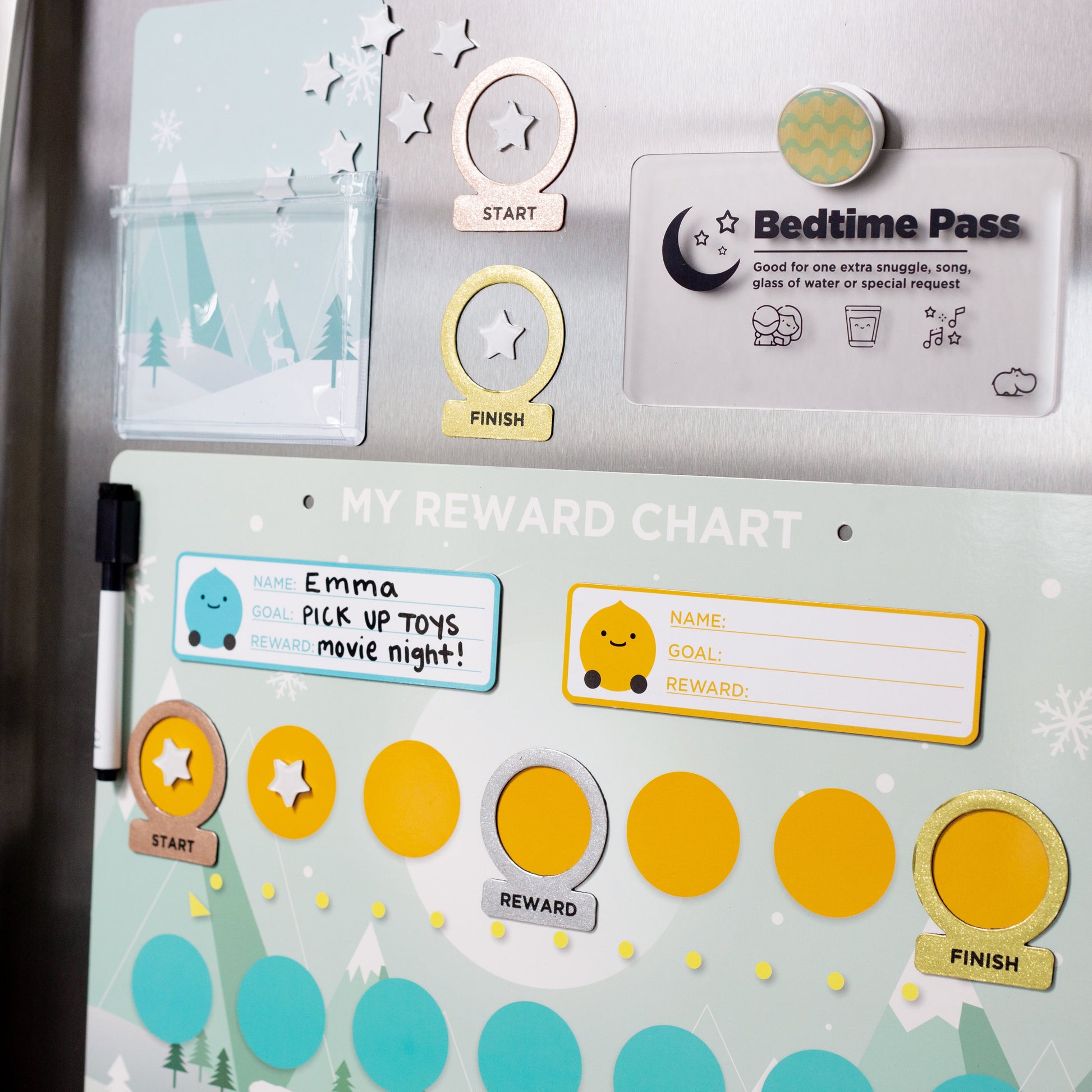- Comes with two name magnets, star magnets, and START/REWARD/FINISH progress magnets