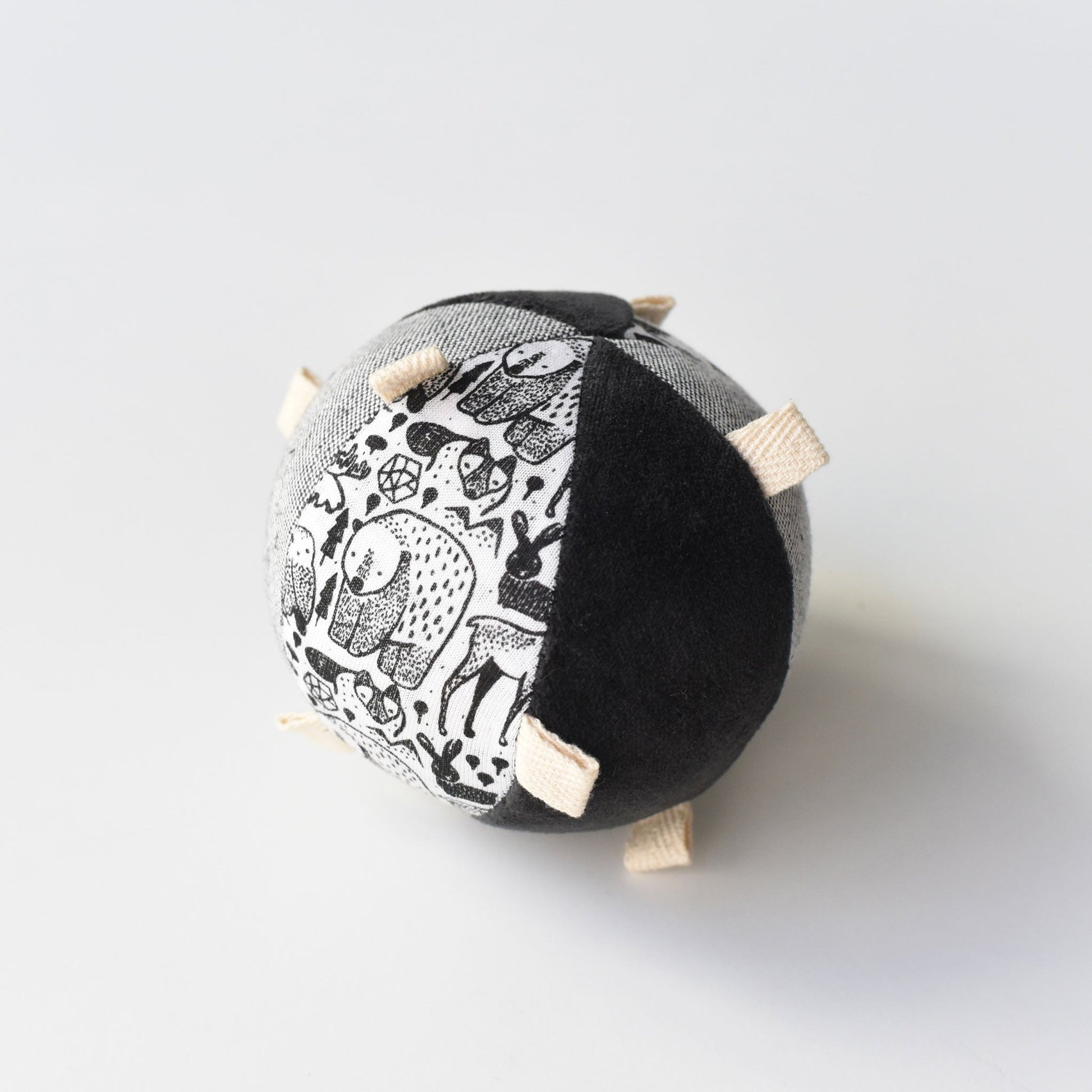 The Taggy Ball invites babies to explore the world through touch, sight, and sound. Inspired by Montessori principles, this soft sensory ball is crafted from a patchwork of organic fabrics, each featuring tiny tags perfect for little hands to grasp, pull, and investigate. Designed with adorable high-contrast Nordic animal illustrations, it captivates early visual development while encouraging curiosity and sensory exploration through play.